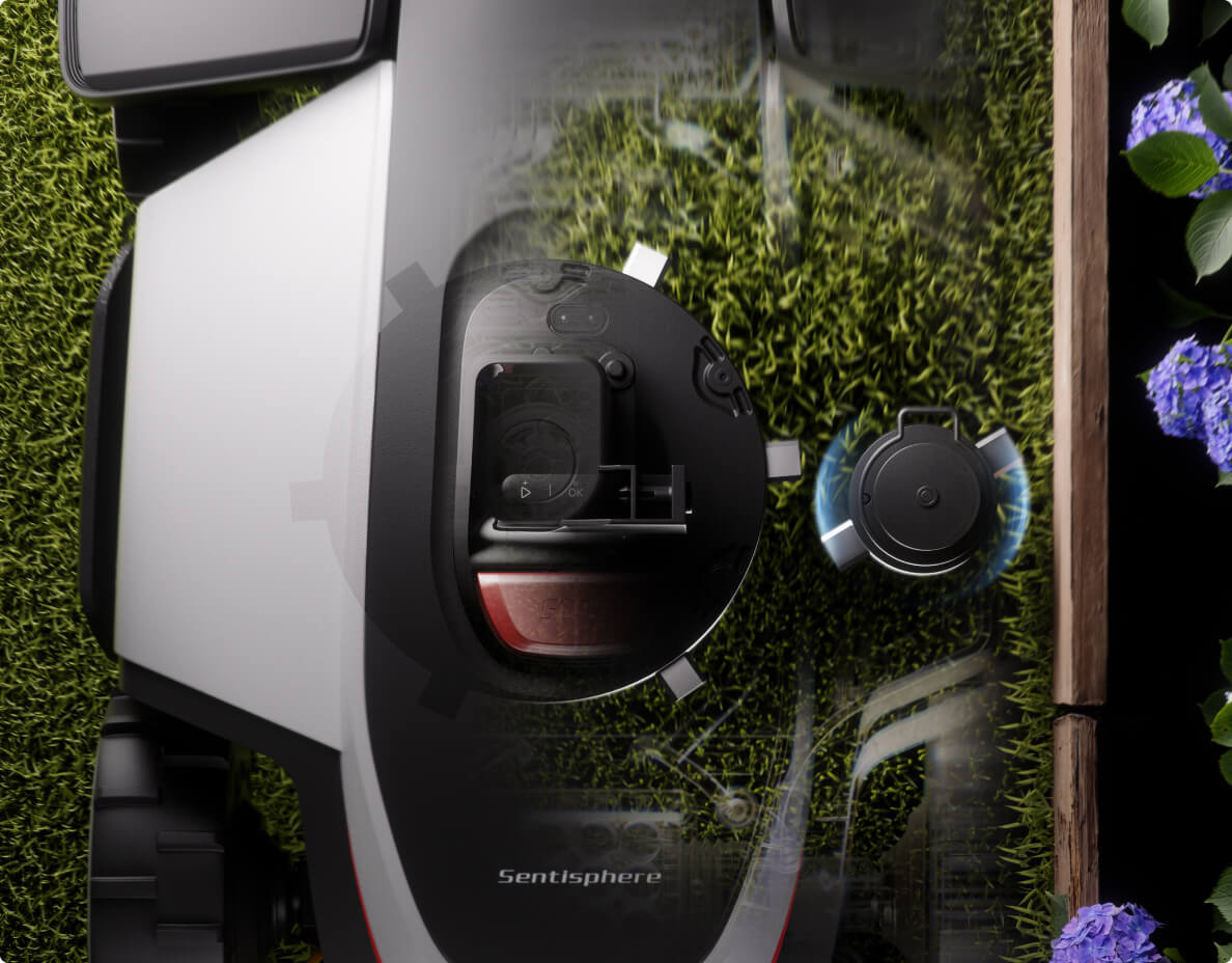 Sentisphere™ miljöavkänningssystem med AI kombinerar RTK och VSLAM för att ge klipparen konstant och noggrann avkänning. Detta garanterar stabil navigering även i skuggiga områden och trånga passager.
