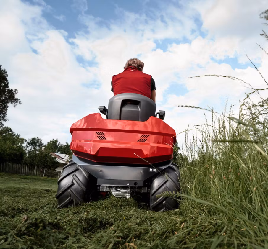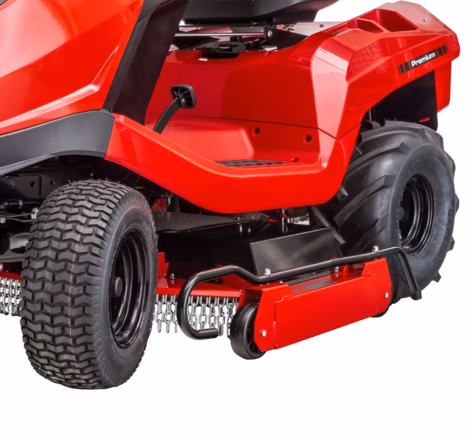 Med det 110 cm breda klippaggregatet med tre knivar och den särskilt höga hastigheten klipps även stora trädgårdar på upp till 9000 m² effektivt. På vintern kan klippaggregatet enkelt tas bort för underhåll eller för att använda traktorn som snöröjningsfordon. De 23-tums traktordäcken säkerställer god framkomlighet i alla terränger och på alla underlag. Klipphöjden kan bekvämt justeras i 7 steg från 30 till 90 mm.